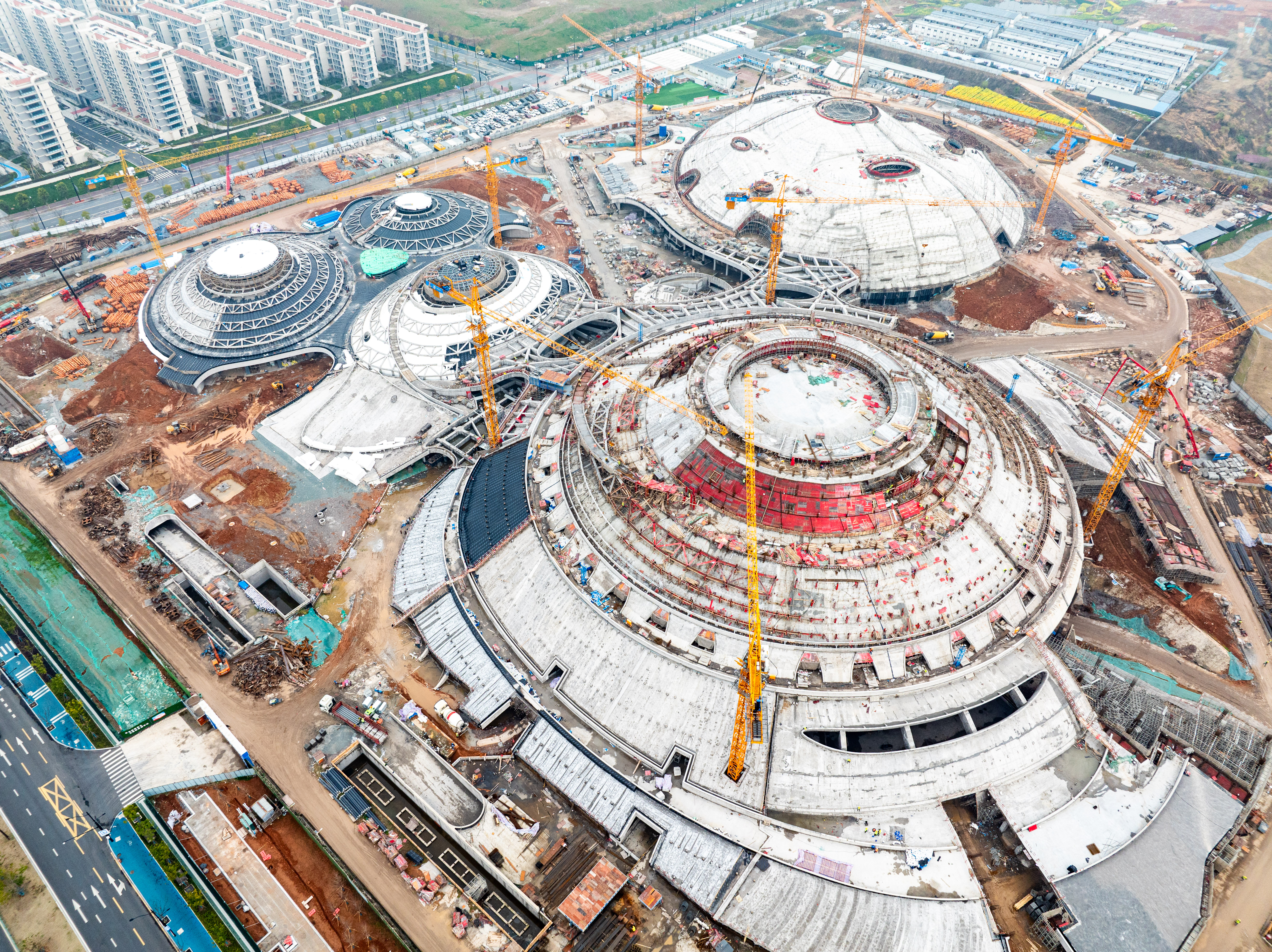 由上海寶冶承建的衢州市體育中心工程——三館及配套工程項目是浙江省重點民生工程,也是浙江省十八運的主場館。以“山水建筑+生態低碳+運動主題”為設計理念。項目總用地面積139347平方米,總建筑面積165212.85平方米。涵蓋超大直徑預應力清水環梁結構、世界最大跨度密肋板殼混凝土屋蓋結構等技術難題。建成后將與衢州體育場構成世界最大覆土建筑群。